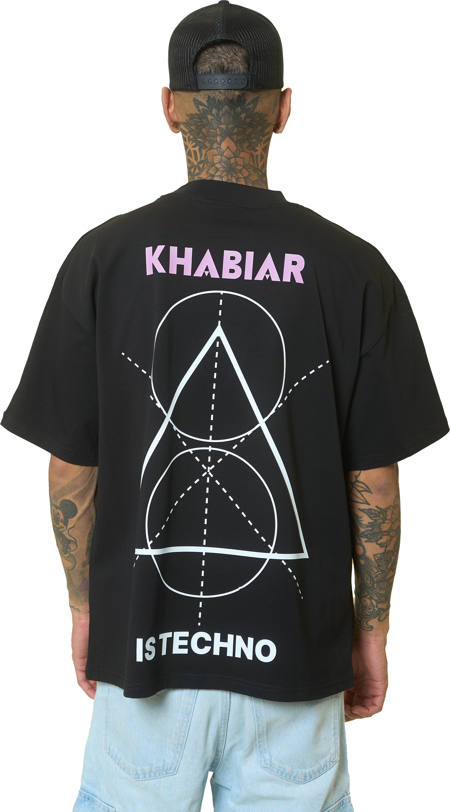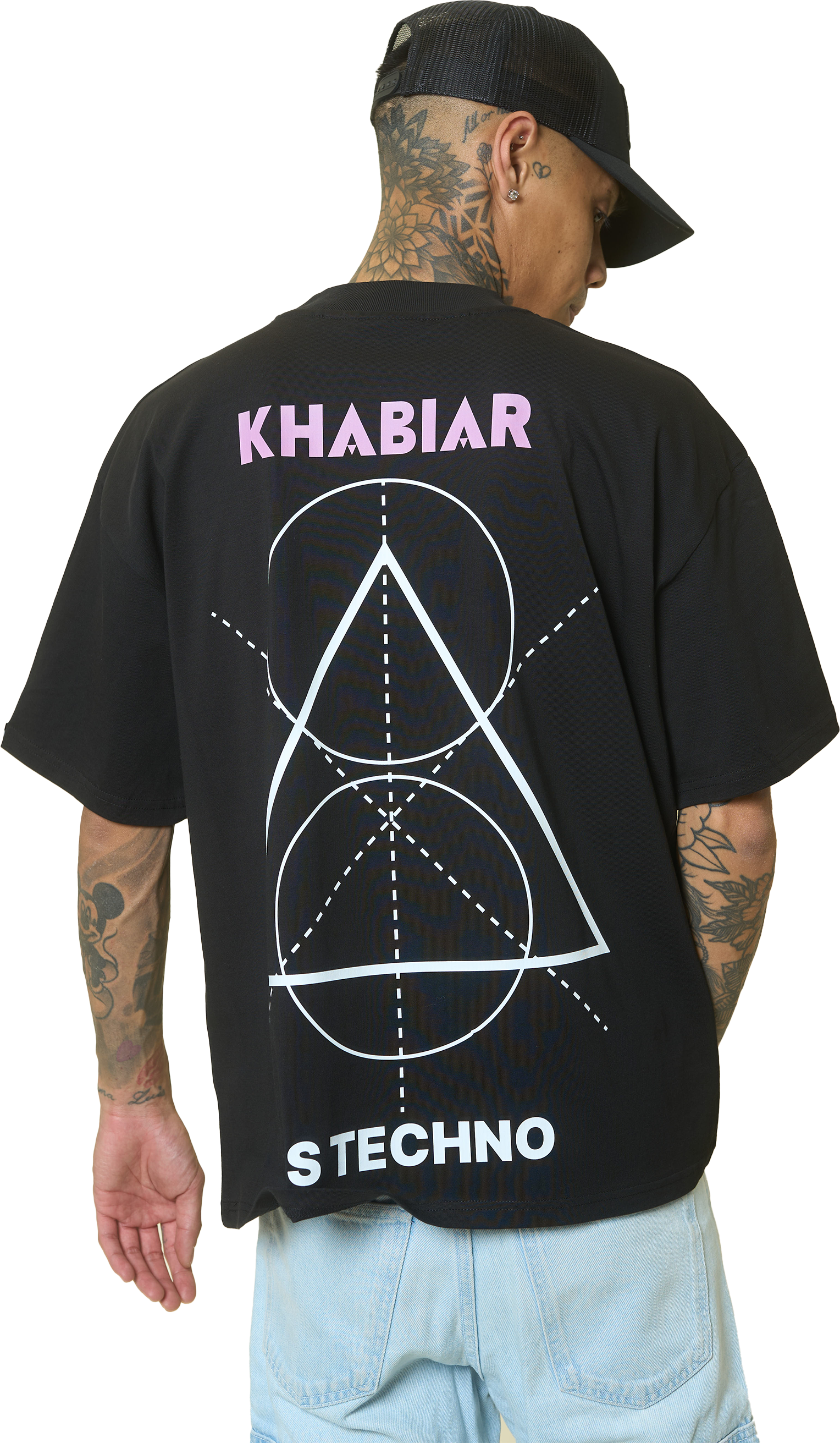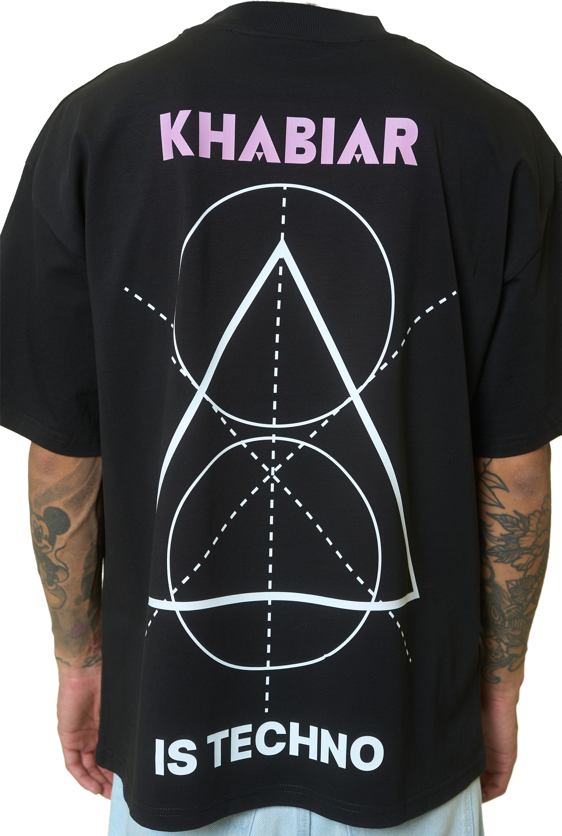 • Estampado trasero: KHABIAR IS TECHNO + diseño techno-estructural